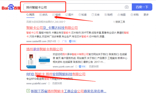 揚(yáng)州*華智能卡有限公司快速排名最快上詞效果展示