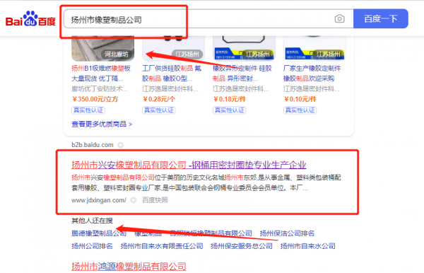 揚州市*安橡塑制品有限公司萬詞霸屏最快上詞效果展示