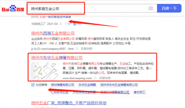 揚州市*華五金彈簧有限公司網(wǎng)站排名排名案例欣賞