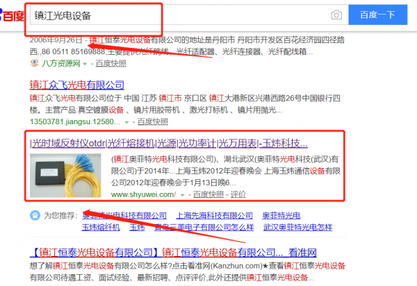 鎮江奧菲特光電科技有限公司與本司簽約百度快照排名協議