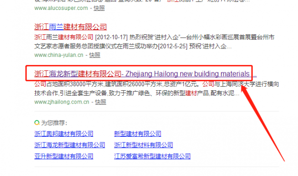 我們公司與浙江海龍新型建材有限公司合作中,對(duì)這個(gè)公司所經(jīng)營的建材這個(gè)行業(yè)的百度快照排名,搜積累了豐富的經(jīng)驗(yàn);同時(shí)在該行業(yè)的百度快照排名,等多元化的領(lǐng)域中也有很多的成功的案例;但愿通過我們的合作,能夠幫助到合作伙伴在同行業(yè)中遙遙領(lǐng)先。