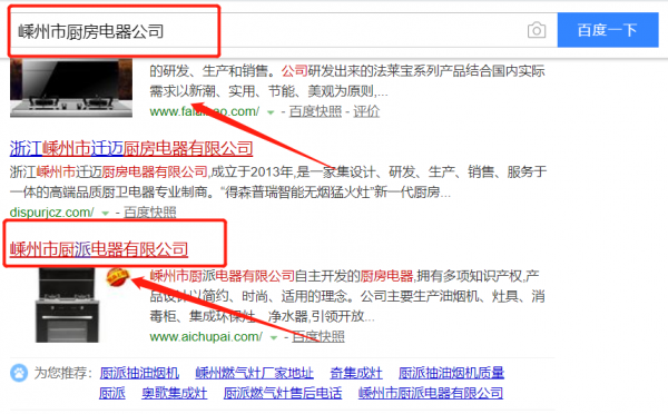 嵊州市廚派電器有限公司與本司簽約百度快照排名協(xié)議