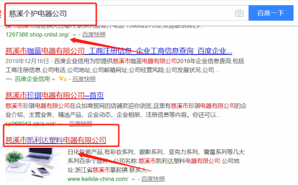 我們公司與慈溪市凱利達塑料電器有限公司合作中,對這個公司所經營的個護電器這個行業提供了百度快照排名,與該公司的合作,更多的客戶讓我們公司為其提供百度快照排名,通過每一次合作,我們公司不斷完善自己,同時希望合作伙伴在經營的路上越來越好。