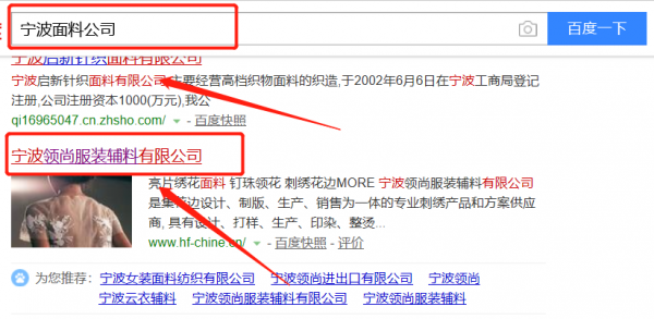寧波領尚服裝輔料有限公司與本司簽約百度快照排名協議