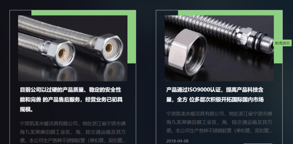 寧波凱龍水暖潔具有限公司,地處浙江省寧波市鎮海九龍湖鎮田顧工業區,海、陸交通運輸及其方便。本公司生產各種不銹鋼軟管(單扣管,雙扣管),銅單雙扣軟管,另外還可按客戶要求定做不銹鋼帶,品種規格齊全,質量優良,交貨及時。目前公司以過硬的產品質量、穩定的安全性能和完善的產品售后服務,經營業務已初具規模。為適應快速發展的需求,公司將以“生命不息,創業不止”的精神,努力發展生產,產品通過ISO9000認證,提高產品科技含量,全方位多層次積極開拓國際國內市場,不斷拓展業務發展領域,廣泛建立國內外客戶信息網絡,穩步壯大企業規模。熱忱歡迎國內外的客商與我們發展業務往來,共同發展!