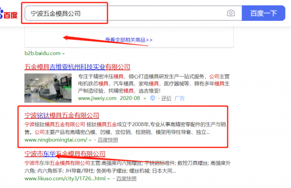 寧波*鈦模具五金有限公司選用我司企業暖通給排水的網站優化產品,其SEO關鍵詞有暖通給排水。一對一定制服務,產品經理在線支持,無憂售后,適用于各個企業,提供一站式網絡營銷服務。百度搜索引擎優化,提升品牌關鍵詞的正面內容信息展現,體現良好的口碑宣傳。寧波*鈦模具五金有限公司成立于2008年,是經寧波市市場監督管理局審核的有資質的公司,其統一社會信用代碼:91330211**2CJD3F2T。公司地址:浙江省寧波市鎮海區駱駝街道汶駱路288號2-525室。