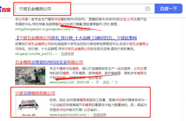 寧波*捷模具有限公司選用我司企業暖通給排水的網站優化產品,其SEO關鍵詞有暖通給排水。一對一定制服務,產品經理在線支持,無憂售后,適用于各個企業,提供一站式網絡營銷服務。百度搜索引擎優化,提升品牌關鍵詞的正面內容信息展現,體現良好的口碑宣傳。寧波*捷模具有限公司成立于2011年,是經寧波市市場監督管理局審核的有資質的公司,其統一社會信用代碼:91330212**9458607G。公司地址:浙江省寧波市鄞州區東吳鎮東村。