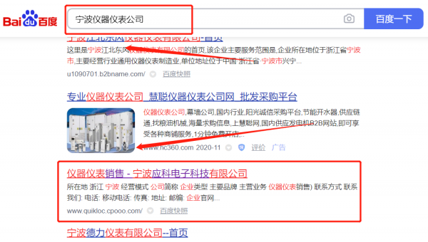 寧波應*電子科技有限公司網站排名最快上詞效果展示