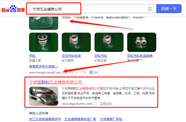 寧波*順和五金模具有限公司選用我司企業五金模具的網站優化產品,其SEO關鍵詞有五金模具。3-15天快速提升網站前五頁關鍵詞排名上百度首頁,幫助客戶增加流量,提高成交量,為您帶來更多潛在客戶,打造客戶品牌影響力。寧波*順和五金模具有限公司成立于2015年,是經寧波市市場監督管理局審核的有資質的公司,其統一社會信用代碼:91330206**6865369Q。公司地址:浙江省寧波市北侖區新碶街道煉化油港路56號1幢1號1樓。