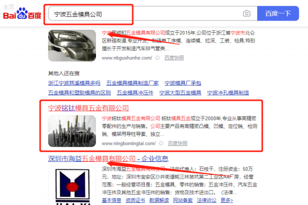 寧波*鈦模具五金有限公司選用我司企業(yè)五金模具的網站優(yōu)化產品,其SEO關鍵詞有五金模具。3-15天快速提升網站前五頁關鍵詞排名上百度首頁,幫助客戶增加流量,提高成交量,為您帶來更多潛在客戶,打造客戶品牌影響力。寧波*鈦模具五金有限公司成立于2008年,是經寧波市市場監(jiān)督管理局審核的有資質的公司,其統(tǒng)一社會信用代碼:91330211M**CJD3F2T。公司地址:浙江省寧波市鎮(zhèn)海區(qū)駱駝街道汶駱路288號2-525室。