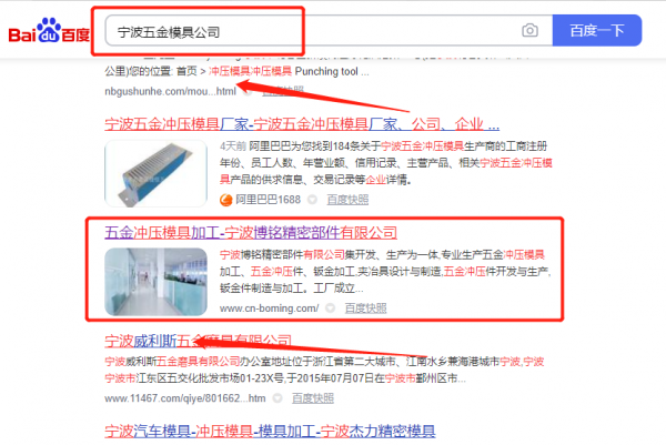 寧波*銘精密部件有限公司選用我司企業五金模具的網站優化產品,其SEO關鍵詞有五金模具。3-15天快速提升網站前五頁關鍵詞排名上百度首頁,幫助客戶增加流量,提高成交量,為您帶來更多潛在客戶,打造客戶品牌影響力。寧波*銘精密部件有限公司成立于2005年,是經寧波市市場監督管理局審核的有資質的公司,其統一社會信用代碼:91330206**2926917R。公司地址:浙江省寧波市北侖區大碶天龍山路36號4幢1號1樓。