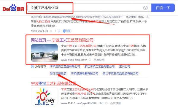 寧波*興工藝品有限公司選用我司企業工藝禮品行業的網站優化產品,其SEO關鍵詞有工藝禮品。利用全新的SEO技術,在短時間內使關鍵詞占領搜索引擎首頁,為企業官網獲取更多更精準的流量。大數據分析,針對性定位,推廣,專屬定制最適合您,效果最全面的的推廣方案,更有效果保證!寧波*興工藝品有限公司成立于1994年,是經寧波市市場監督管理局審核的有資質的公司,其統一社會信用代碼:913302116**266033X。公司地址:浙江省寧波市鎮海區蟹浦鎮鄭家十七房村。