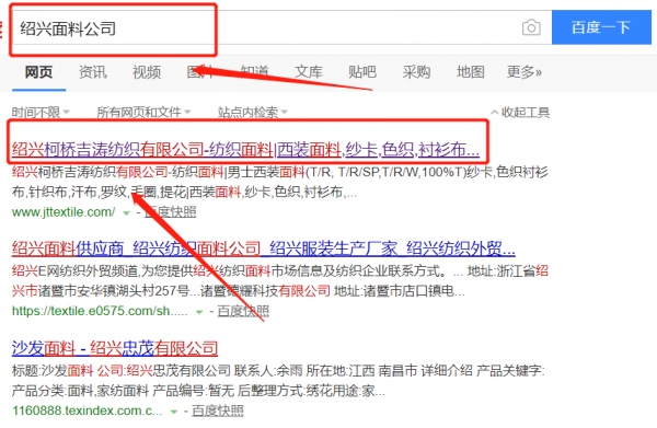 紹興柯橋吉濤紡織有限公司選用我司企業面料行業的網站優化產品,其SEO關鍵詞有面料。無論你關鍵詞是在20名內、30名內、還是50名內。我們都可以在最短時間優化至搜索引擎的首頁。提供后臺管理,排名查詢、關鍵詞管理、財務扣費一目了然,一鍵操作。紹興柯橋吉濤紡織有限公司成立于2011年,是經紹興市市場監督管理局審核的有資質的公司,其統一社會信用代碼:913306215765452498。公司地址:浙江省紹興市柯橋區柯橋金匯大廈1幢1402-1室。