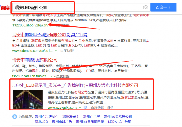 我們公司與溫州友遠(yuǎn)光電科技有限公司合作中,對這個公司所經(jīng)營的LED配件這個行業(yè)提供了百度快照排名,與該公司的合作,更多的客戶讓我們公司為其提供百度快照排名,通過每一次合作,我們公司不斷完善自己,同時希望合作伙伴在經(jīng)營的路上越來越好。