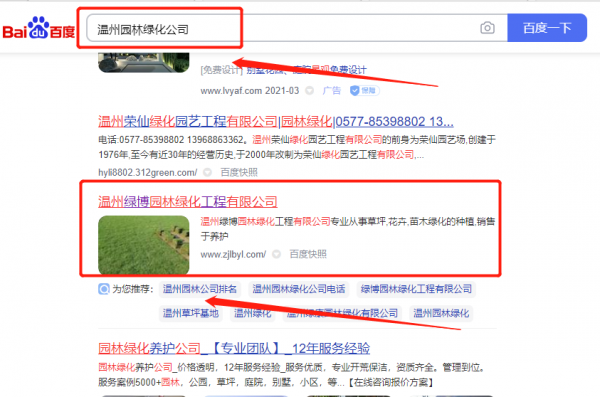 溫州綠*園林綠化工程有限公司選用我司企業(yè)園林綠化的網(wǎng)站優(yōu)化產(chǎn)品,其SEO關(guān)鍵詞有園林綠化。3-15天快速提升網(wǎng)站前五頁關(guān)鍵詞排名上百度首頁,幫助客戶增加流量,提高成交量,為您帶來更多潛在客戶,打造客戶品牌影響力。溫州綠*園林綠化工程有限公司成立于2019年,是經(jīng)溫州市市場監(jiān)督管理局審核的有資質(zhì)的公司,其統(tǒng)一社會信用代碼:91330326M**AUPH184 。公司地址:浙江省溫州市平陽縣昆陽鎮(zhèn)湖嶼村殿前路47號。