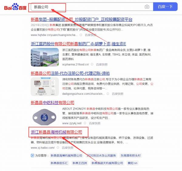 浙江新昌縣海*機械有限公司網站優化最快上詞效果展示