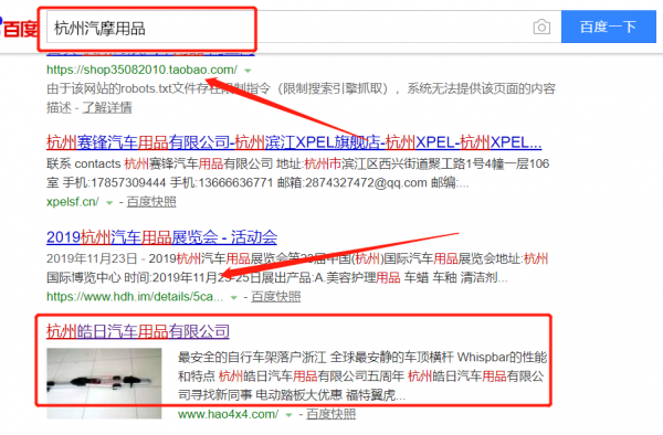 我們公司與杭州皓日汽車用品有限公司合作中,對這個公司所經營的汽摩用品這個行業提供了快速排名,與該公司的合作,更多的客戶讓我們公司為其提供快速排名,通過每一次合作,我們公司不斷完善自己,同時希望合作伙伴在經營的路上越來越好。