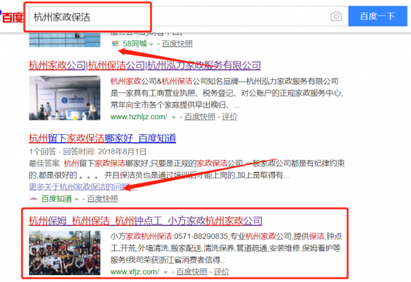 杭州小方家政服務有限公司是一家經營多年有實力的綜合家政公司,可為各大企事業單位做后勤配套服務,為居民家庭提供全方位服務,為賓館、單位、公司、小區提供各類物業管理,可提供100余項服務。小方家政擁有完善的管理制度、高素質的管理人員、充裕的中高級家政服務人員和專業的保潔以及技術維修人員。歡迎來電咨詢!?。?br /> 我們公司與杭州小方家政服務有限公司合作中,對這個公司所經營的家政保潔這個行業提供了SEO推廣,與該公司的合作,更多的客戶讓我們公司為其提供SEO推廣,通過每一次合作,我們公司不斷完善自己,同時希望合作伙伴在經營的路上越來越好。