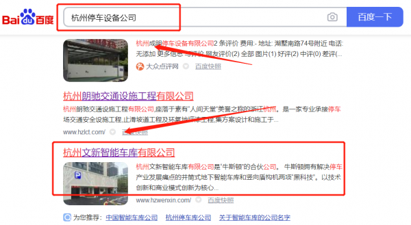 杭州文*智能車庫有限公司網(wǎng)站排名排名效果展示