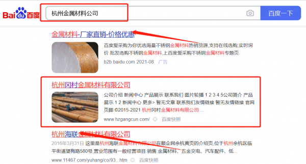 杭州*村金屬材料有限公司百度排名參考網站