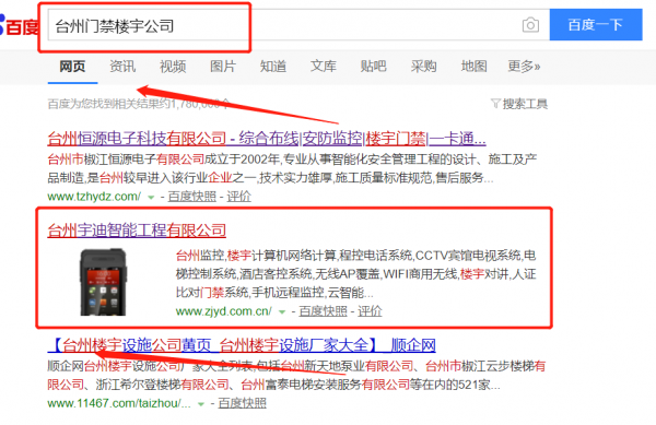 臺州宇*智能工程有限公司選用我司企業門禁樓宇的網站優化產品,其SEO關鍵詞有門禁樓宇。通過SEO做好排名后,一般可以保持半年以上的良好效果,大大節約成本,有效提升企業品牌知名度。按日收費,不限次數點擊,為企業呈現每一步優化效果,有據可循,并承諾關鍵字上了百度首頁才扣費。臺州宇*智能工程有限公司成立于2010年,是經臺州市市場監督管理局審核的有資質的公司,其統一社會信用代碼:91331000**1780728C。公司地址:浙江省臺州市緯一路1-49號3幢二層A區。