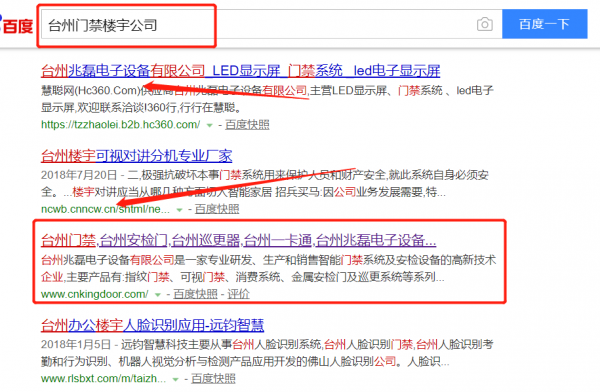 臺州兆*電子設備有限公司選用我司企業門禁樓宇的網站優化產品,其SEO關鍵詞有門禁樓宇。通過SEO做好排名后,一般可以保持半年以上的良好效果,大大節約成本,有效提升企業品牌知名度。按日收費,不限次數點擊,為企業呈現每一步優化效果,有據可循,并承諾關鍵字上了百度首頁才扣費。臺州兆*電子設備有限公司成立于2008年,是經臺州市市場監督管理局審核的有資質的公司,其統一社會信用代碼:91331004**8428051A。公司地址:浙江省臺州市路橋區路北街道洋葉村。