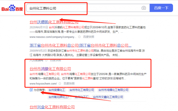 臺州市鴻*化工有限公司百度關(guān)鍵詞排名專注一站式品牌營銷整合推廣