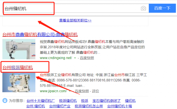 臺州極派工業縫紉機有限公司與我司簽下百度霸屏協議