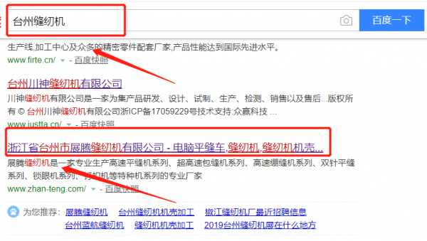 浙江省臺州市展騰縫紉機有限公司與我司簽下百度霸屏協議