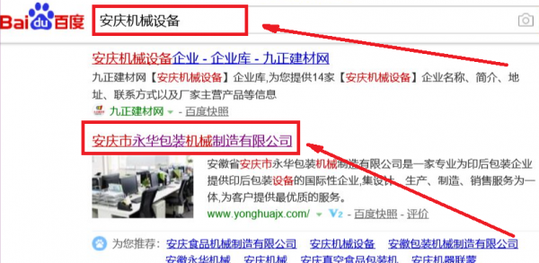 安徽省安慶市永華包裝機械制造有限公司與我司簽下百度霸屏協議