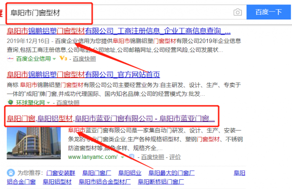 我們公司與阜陽市藍亞門窗有限公司合作中,對這個公司所經營的門窗型材這個行業提供了快速排名,與該公司的合作,更多的客戶讓我們公司為其提供快速排名,通過每一次合作,我們公司不斷完善自己,同時希望合作伙伴在經營的路上越來越好。