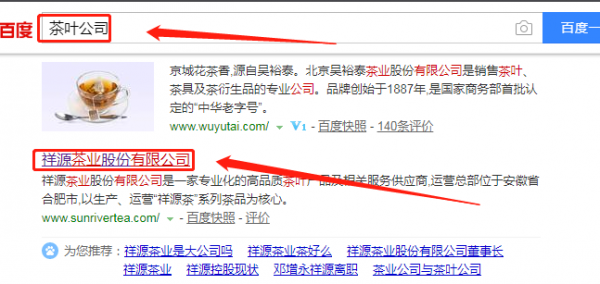 祥源茶業(yè)股份有限公司與我司做百度快照排名項目