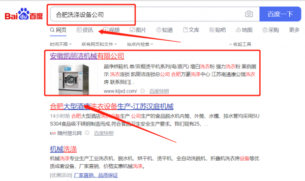 安徽凱*潔機械有限公司SEO優化排名效果展示