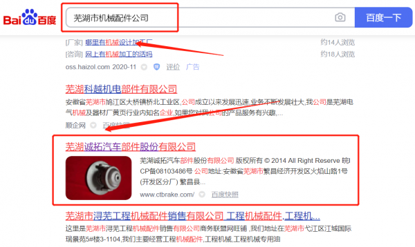我們公司與蕪湖誠*汽車部件股份有限公司合作中,對這個公司所經營的機械配件這個行業提供了網站推廣,與該公司的合作,更多的客戶讓我們公司為其提供百度快照排名,通過每一次合作,我們公司不斷完善自己,同時希望合作伙伴在經營的路上越來越好。