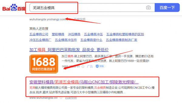 蕪湖航*精密模具有限公司選用我司企業五金模具的網站優化產品,其SEO關鍵詞有五金模具。一對一定制服務,產品經理在線支持,無憂售后,適用于各個企業,提供一站式網絡營銷服務。百度搜索引擎優化,提升品牌關鍵詞的正面內容信息展現,體現良好的口碑宣傳。蕪湖航*精密模具有限公司成立于2012年,是經蕪湖市市場監督管理局審核的有資質的公司,其統一社會信用代碼:913402080**2331398。公司地址:安徽省蕪湖市三山區經濟開發區星火路4號。
