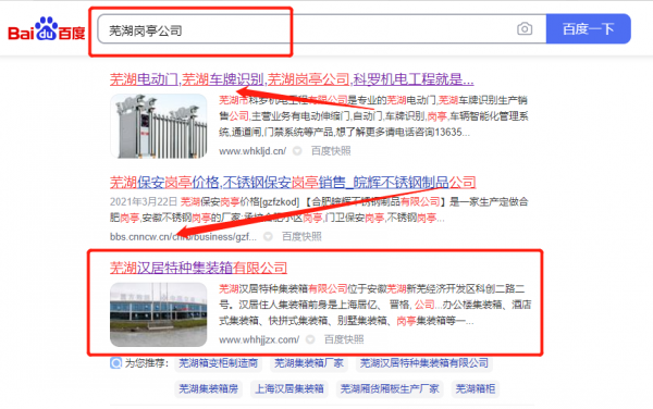 我們公司與蕪湖漢*特種集裝箱有限公司合作中,對這個公司所經營的崗亭這個行業提供了SEO,與該公司的合作,更多的客戶讓我們公司為其提供SEO推廣,通過每一次合作,我們公司不斷完善自己,同時希望合作伙伴在經營的路上越來越好。