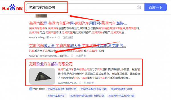 蕪湖*業汽車部件有限公司網絡營銷效果展示