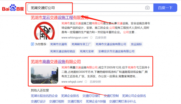 蕪湖市*鑫交通設施有限公司選用我司企業交通燈的網站優化產品,其SEO關鍵詞有交通燈。支持新站、不限排名、按天計費、快速排名、支持百度、360等主流搜索引擎,不達首頁不扣錢,域名空間一步到位,讓您的網站更安全,更放心。蕪湖市*鑫交通設施有限公司成立于2005年,是經蕪湖市市場監督管理局審核的有資質的公司,其統一社會信用代碼:91340200**30136037。公司地址:安徽省蕪湖市火龍崗鎮牌坊嶺白馬小區02幢29號商住樓。