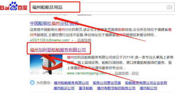 福州加利亞船舶服務有限公司與本司簽約百度快照排名協議