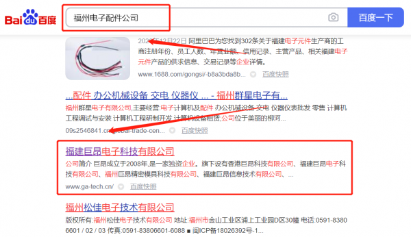 福建巨*電子科技有限公司網站推廣保證在首頁效果