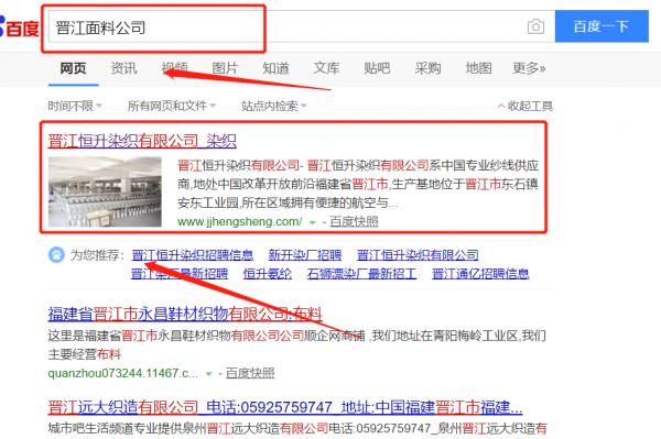 晉江*升染織有限公司選用我司企業面料的網站優化產品,其SEO關鍵詞有面料的。按天計費,最快7天上詞,不到首頁不扣費。關鍵詞質量保證,白帽SEO符合百度算法,360、搜狗、移動端等排名效果免費贈送。晉江*升染織有限公司成立于1995年,是經晉江市市場監督管理局審核的有資質的公司,其統一社會信用代碼:91350582**1564956E。公司地址:福建省晉江經濟開發區(安東園)園東大道61號。