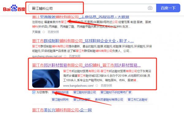 我們公司與晉江市*達(dá)鞋材貿(mào)易有限公司合作中,對(duì)這個(gè)公司所經(jīng)營(yíng)的輔料這個(gè)行業(yè)提供了網(wǎng)站排名,與該公司的合作,更多的客戶讓我們公司為其提供SEO優(yōu)化,通過(guò)每一次合作,我們公司不斷完善自己,同時(shí)希望合作伙伴在經(jīng)營(yíng)的路上越來(lái)越好。