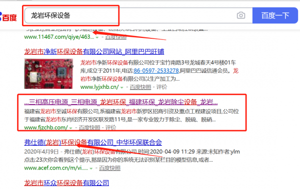 福建省龍巖市*誠環保有限公司選用我司企業環保設備行業的網站優化產品,其SEO關鍵詞有電子產品環保設備。快速優化系統火速推采用智能數據系統,效果一目了然,包括關鍵詞排名,消費,余額等,并通過大量的數據分析優化廣告效果。福建省龍巖市*誠環保有限公司成立于2011年,是經龍巖市市場監督管理局審核的有資質的公司,其統一社會信用代碼:91350800**7014159K。公司地址:福建省龍巖市東肖經濟開發區聯發路11號。