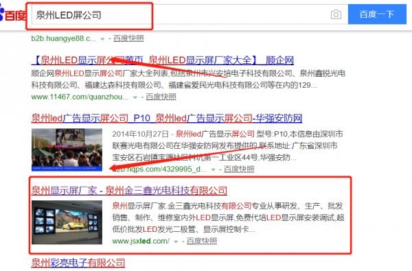 我們公司與泉州金三鑫光電科技有限公司合作中,對(duì)這個(gè)公司所經(jīng)營的LED屏這個(gè)行業(yè)提供了關(guān)鍵詞搜索排名,與該公司的合作,更多的客戶讓我們公司為其提供關(guān)鍵詞搜索排名,通過每一次合作,我們公司不斷完善自己,同時(shí)希望合作伙伴在經(jīng)營的路上越來越好。
