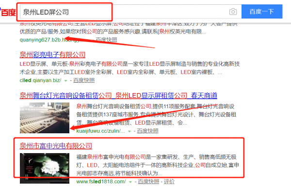 我們公司與福建泉州市富申光電有限公司合作中,對這個公司所經營的LED屏這個行業提供了關鍵詞搜索排名,與該公司的合作,更多的客戶讓我們公司為其提供關鍵詞搜索排名,通過每一次合作,我們公司不斷完善自己,同時希望合作伙伴在經營的路上越來越好。