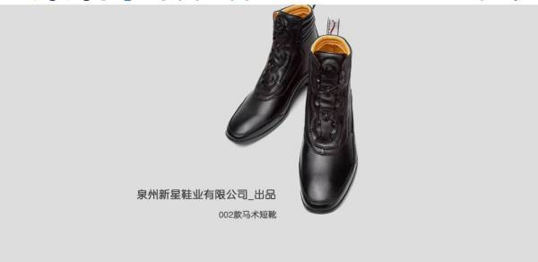 泉州新*鞋業(yè)有限公司是一家集研發(fā),生產(chǎn),批發(fā)銷售于一體的鞋業(yè)公司,主要生產(chǎn)馬術短靴,長靴,護腿,馬蹄靴,醫(yī)靴等馬術用品。專業(yè)生產(chǎn)馬術用品13年,純手工制作。出口德國,法國,意大利,荷蘭,比利時,韓國,日本等十幾個國家。每年出口量達20余萬雙。隨著國內(nèi)馬術行業(yè)蓬勃發(fā)展,2017年起開展國內(nèi)業(yè)務。為國內(nèi)各大品牌商提供設計研發(fā),貼牌生產(chǎn),私人訂制等服務。本著以質(zhì)量求生存,以信譽求發(fā)展的企業(yè)態(tài)度,真誠邀您合作。