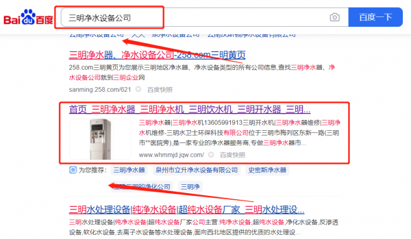 三明水*士環保科技有限公司選用我司企業凈水設備的網站優化產品,其SEO關鍵詞有凈水設備。為用戶分析百度、360等SEO優化數據,可全站委托關鍵詞SEO優化外包,在投入成本最小化的同時實現客戶利益的最大化。三明水*士環保科技有限公司成立于2011年,是經三明市市場監督管理局審核的有資質的公司,其統一社會信用代碼:91350402**92978422。公司地址:福建省三明市梅列區東新一路。