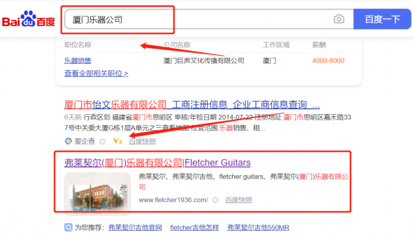 弗萊契*(廈門)樂器有限公司百度排名讓網站輕松覆蓋在搜索引擎