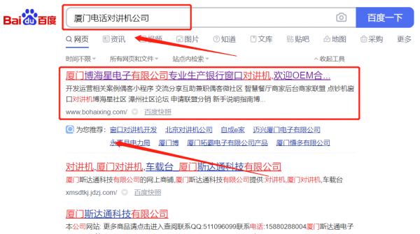 我們公司與廈門博*星電子有限公司合作中,對這個公司所經營的電話對講機這個行業提供了快速排名,與該公司的合作,更多的客戶讓我們公司為其提供SEO優化,通過每一次合作,我們公司不斷完善自己,同時希望合作伙伴在經營的路上越來越好。