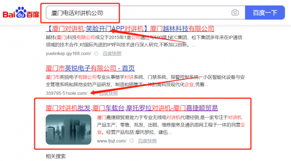 廈門嘉*順貿(mào)易有限公司選用我司企業(yè)電話對講機(jī)行業(yè)的網(wǎng)站優(yōu)化產(chǎn)品,其SEO關(guān)鍵詞有電話對講機(jī)。幫助企業(yè)客戶快速實(shí)現(xiàn)官網(wǎng)平臺搭建、無開發(fā)成本、應(yīng)對業(yè)務(wù)高速增長、強(qiáng)化安全能力,助力企業(yè)客戶快速實(shí)現(xiàn)業(yè)務(wù)推廣及業(yè)務(wù)增收的目標(biāo)。廈門嘉*順貿(mào)易有限公司成立于2010年,是經(jīng)廈門市市場監(jiān)督管理局審核的有資質(zhì)的公司,其統(tǒng)一社會信用代碼:913502065**827405U。公司地址:福建省廈門市湖里區(qū)江頭北路55號店面之一。